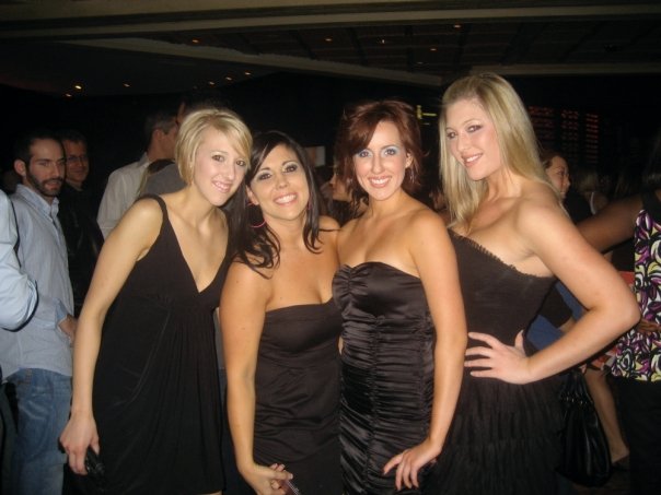 The dress had survived some of my most intoxicated college nights, but it still had one more go round left in it. It was only days before we were headed to Vegas and Katie needed a little black dress. By this time, we had all begun to call it The Traveling Dress. Katie tried her on and alas, a perfect fit. Katie, took her to Vegas for the bachelorette party (on right), where my little black BCBG ruffle dress got to spend the night with all of it’s previous wearers.