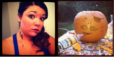 | I decided to be, “The One That Got Away” because irony is always a good costume. Meet Captain Corona, my drunken pirate pumpkin! |