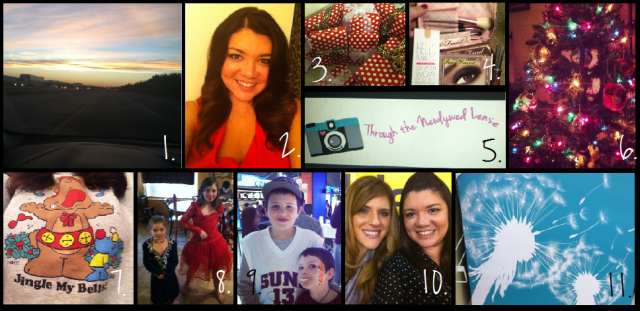 1) A gorgeous sunrise welcoming me back to Arizona. 2) A shameless selfie after I went back to my natural hair color 3) present wrapping on the wild side! 4) The gift of great makeup! I just love benefit cosmetics and Too Faced! 5) Doing a little design work- and I mean a little. Sooo behind! 6)The family tree 7)The holiday sweatshirt I wore out to the bars on Christmas night. One man told me I was too pretty for such an ugly sweatshirt and then asked me to arm wrestle. I didn’t know how to respond, so I got another drink. 8) I gave my sisters all my old dance costumes. Now they have the best dress up clothes in town. Mom, you’re welcome! 9) Took my brothers to a basketball game. It was one of my favorite nights home. 10) Reunited with some of my best friends. Lauren and I did the usual, Suns game and then drank our sorrows after they lost. 11) Inspiration for my next art project. |